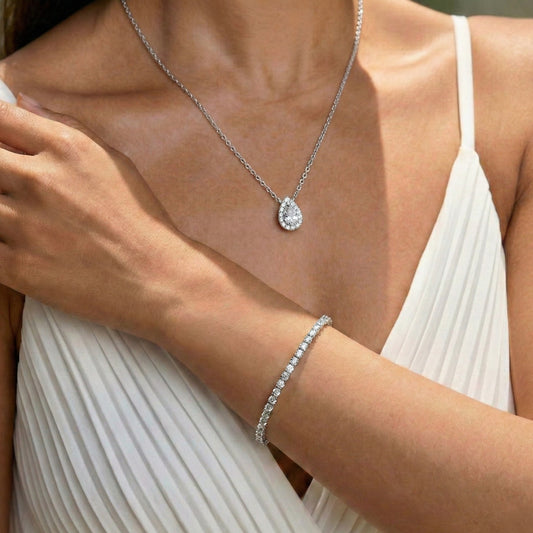 4.4ct Lab Created Moissanite Tennis Bracelet and 1ct Pear Cut Necklace Set
