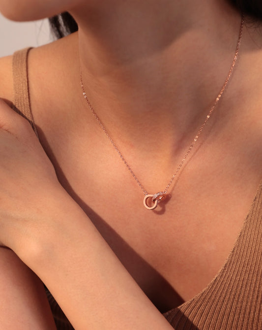 Amélie Interlocking Pendant Necklace in Rose Gold
