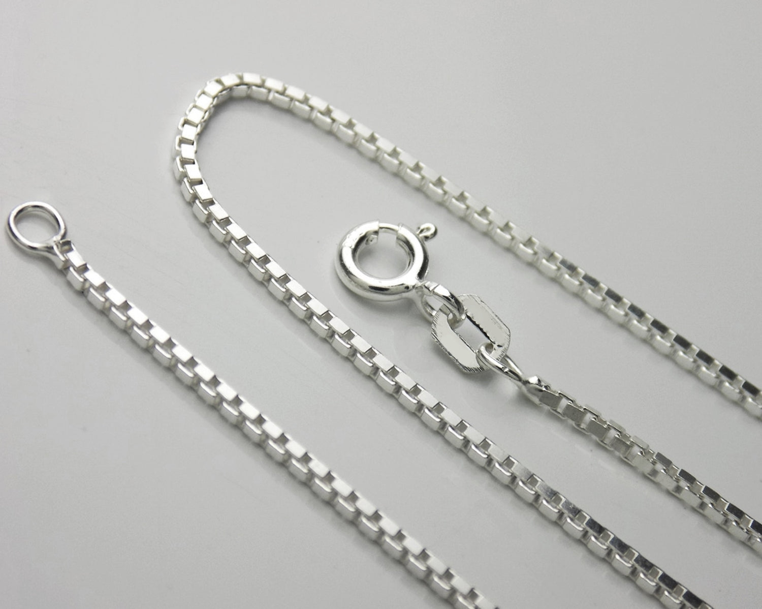 Unlike brass or copper chains that tarnish and break easily, our solid silver box chain is super sturdy and resists everyday wear. You get lasting strength, a brilliant shine, and a comfortable fit that won’t disappoint.