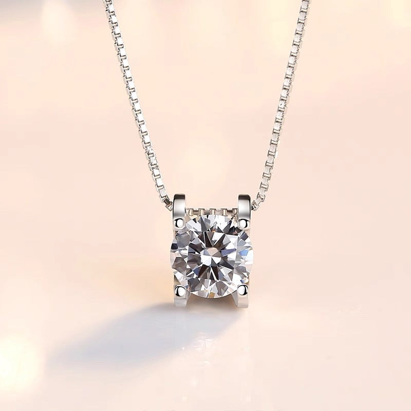 Our Celine Diamond Necklace in White Gold is a striking example of quiet luxury. Featuring a round pendant with sparkling brilliant 1ct moissanite diamond in rose gold plated sterling silver, this stunning pendant gives you 360 degrees of lasting shine that you can wear forever.