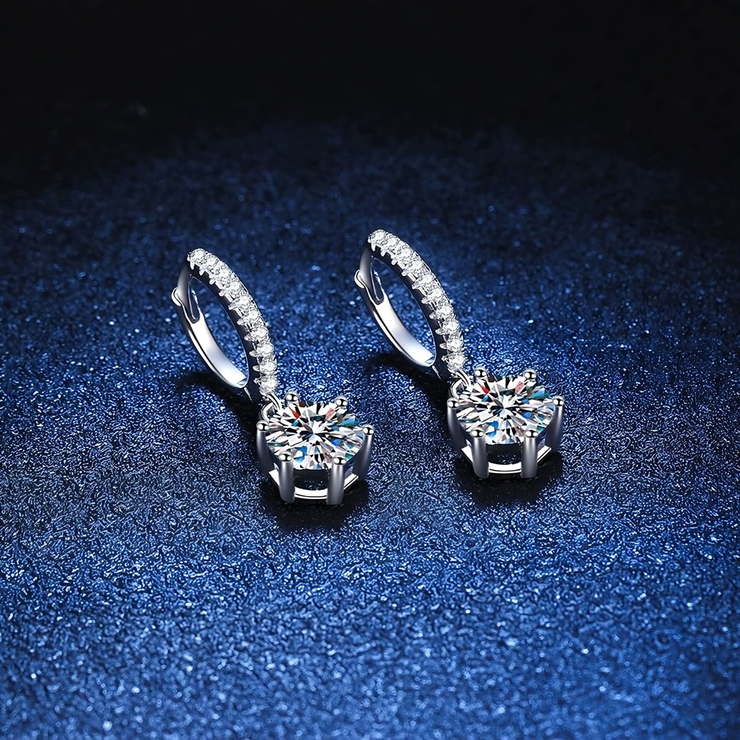 The Elisa Diamond Earrings in Moissanite features 2ct moissanite stones, catching the light with every movement. Elevate your elegance and grace with this captivating pair, perfect for both special occasions and everyday glamour.