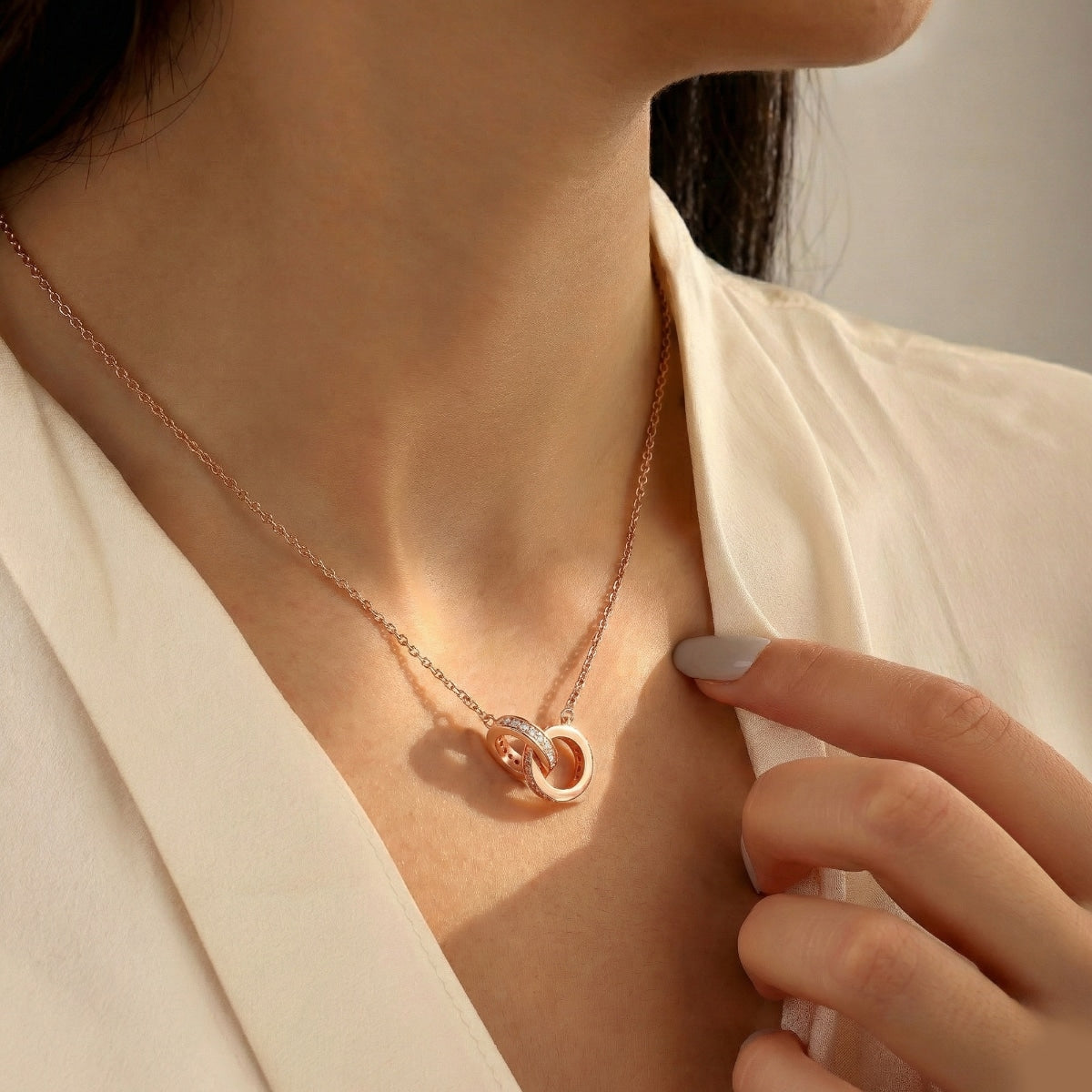 Amélie Interlocking Pendant Necklace in Rose Gold